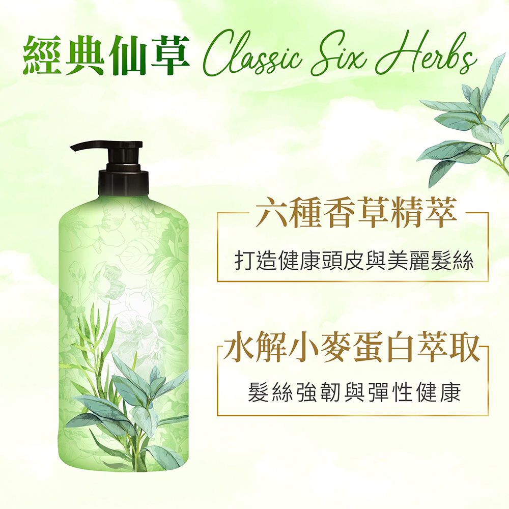添加精選六種香草植萃,以草本植物的原始力量打造健康頭皮與美麗髮絲。