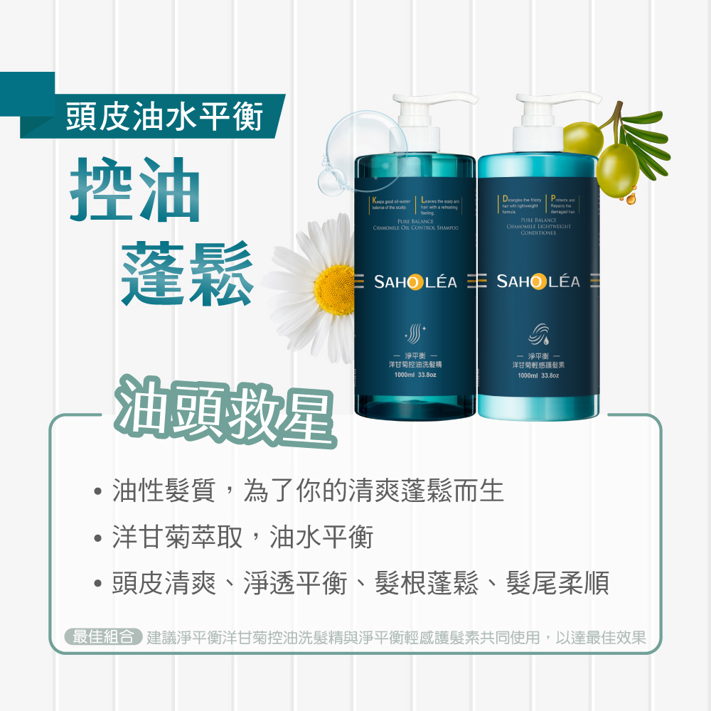 【森歐黎漾】淨平衡洋甘菊涼感控油洗髮精1000ml SAHOLEA (小明星大跟班/醫師好辣/一袋女王/節目推薦)