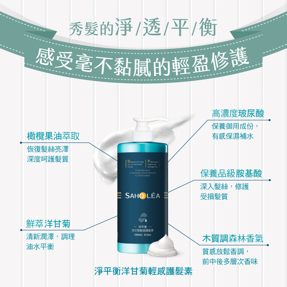 【森歐黎漾】淨平衡極致護髮素1000ml SAHOLEA (小明星大跟班/醫師好辣/一袋女王/節目推薦)