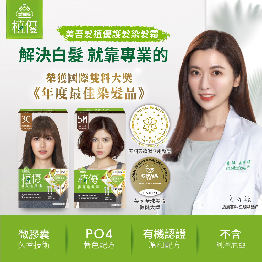 採用花植菁萃溫和配方,雙重滋養,減低染劑對頭皮與頭髮傷害