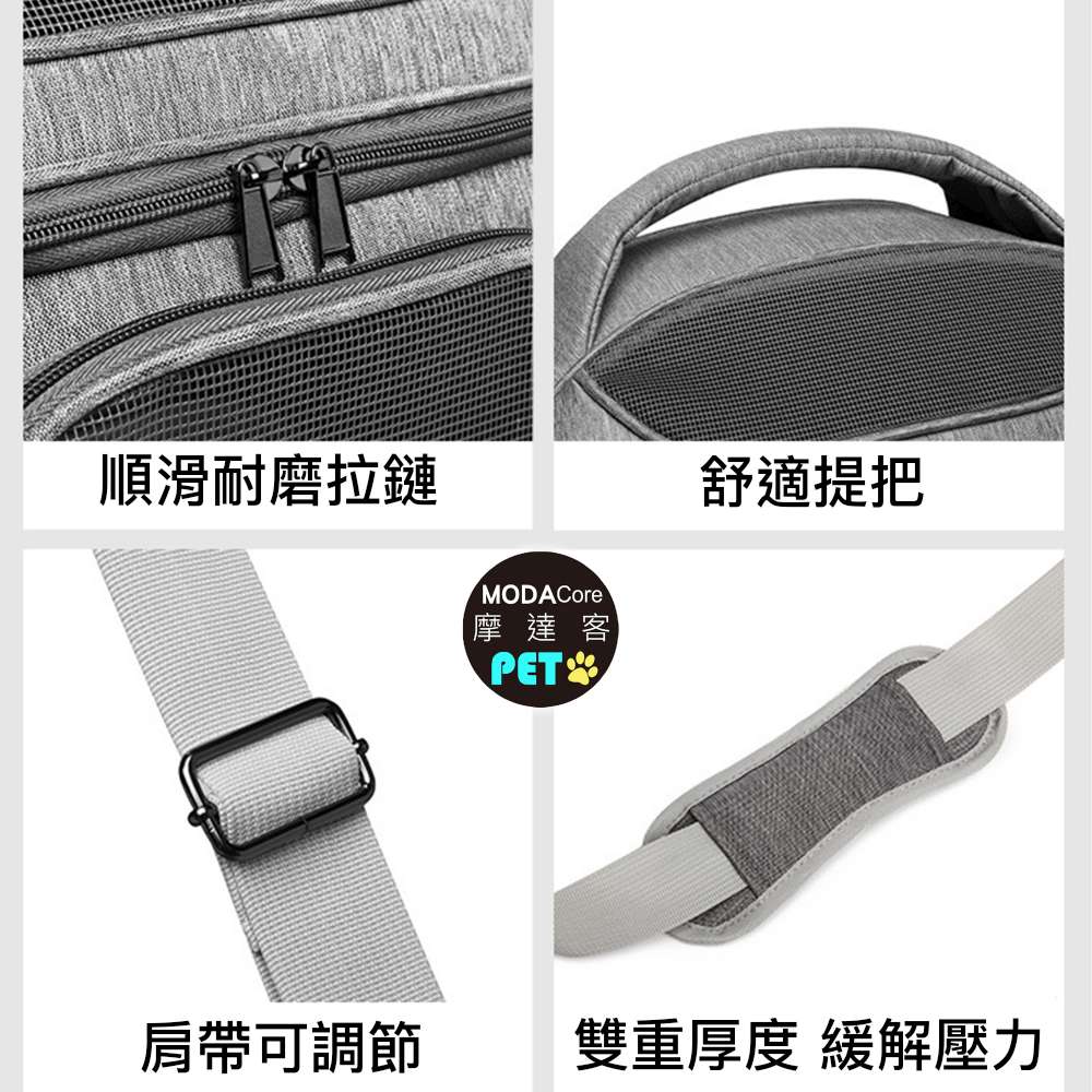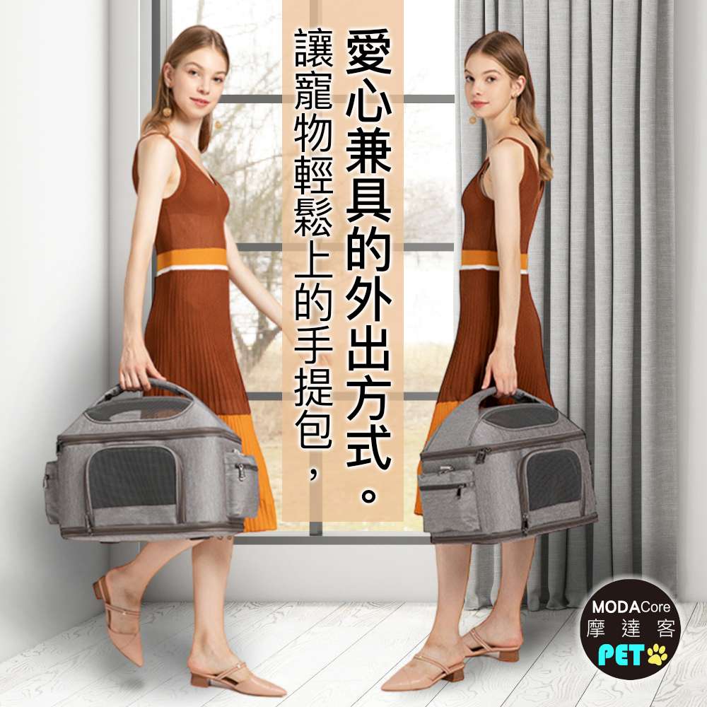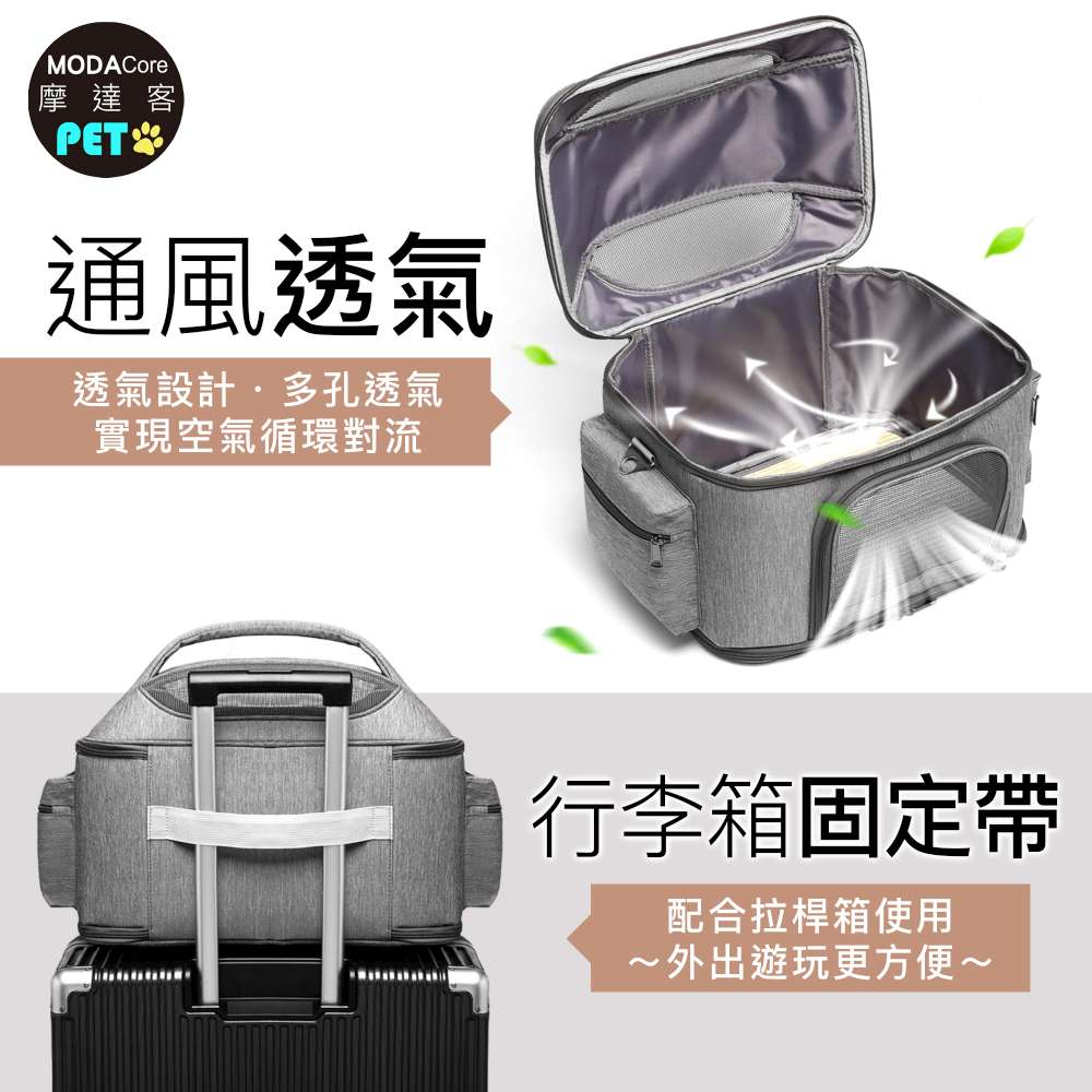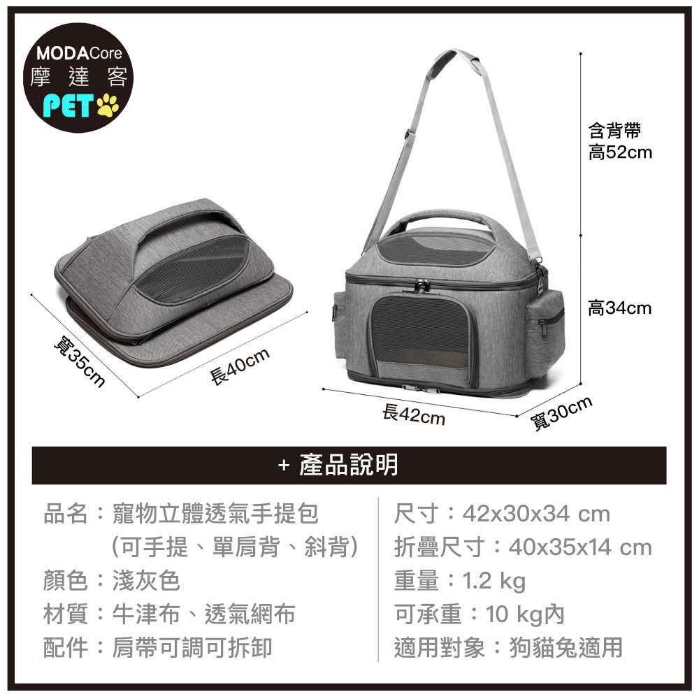 摩達客-寵物立體透氣寵物手提包/淺灰色/具行李箱固定帶/可放置行李箱上(預購+現貨)