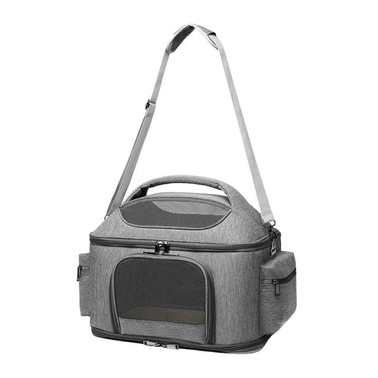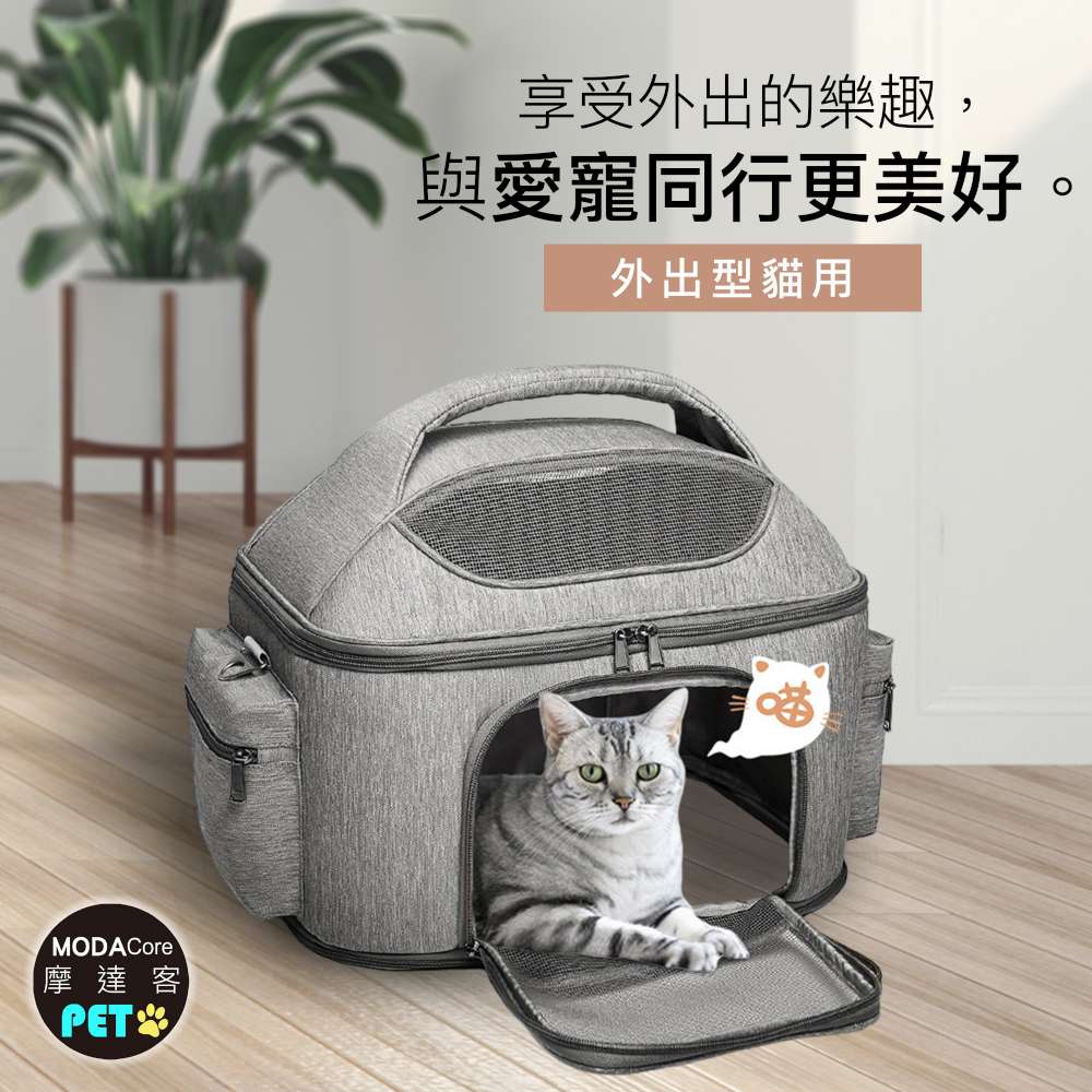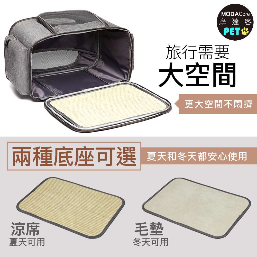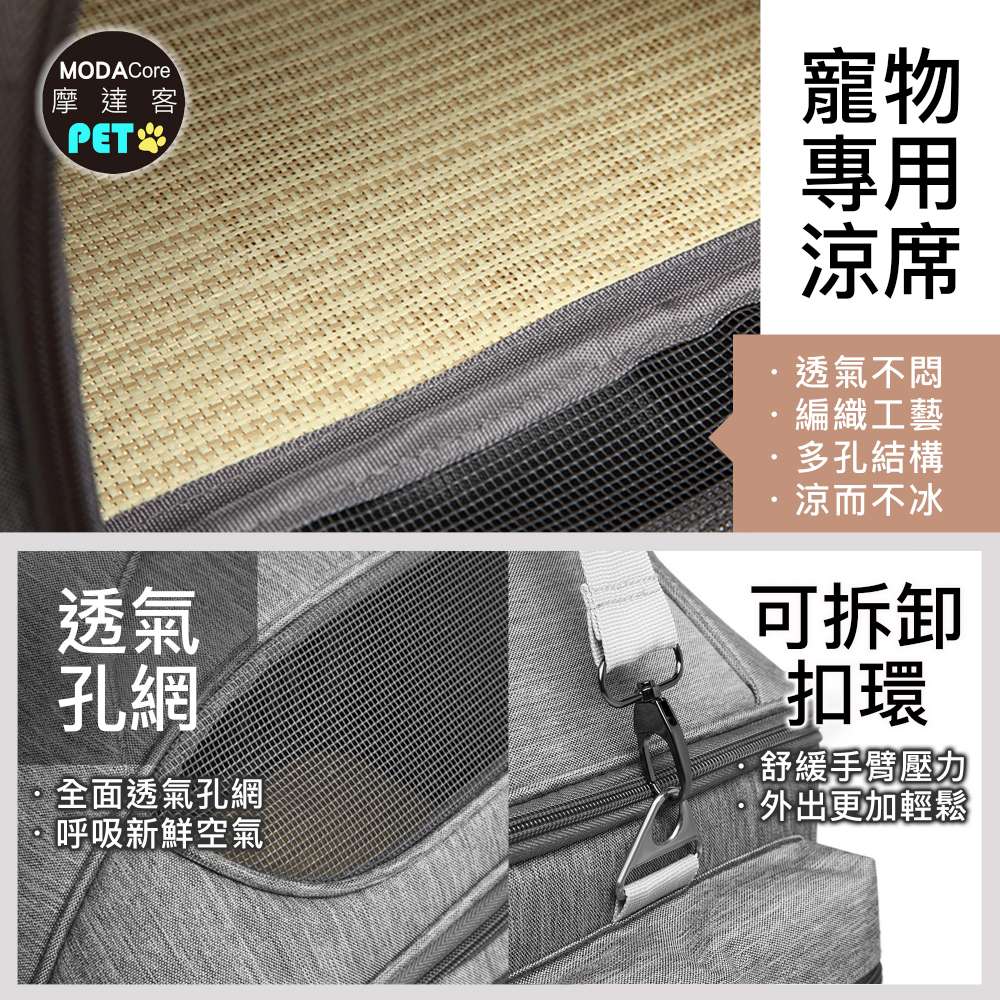 摩達客-寵物立體透氣寵物手提包/淺灰色/具行李箱固定帶/可放置行李箱上(預購+現貨)
