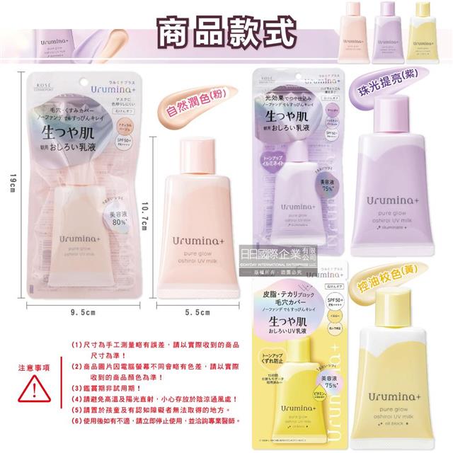 ●品名:Urumina+晨間潤澤乳液防護肌膚隔離霜