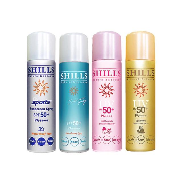 SHILLS舒兒絲-很耐曬超清爽SPF50+/PA++++長效約8hr抗汗隔水涼感防曬噴霧-戶外運動(銀)90g/罐(sports露營海邊抗UV紫外線/定妝控油隔離霜)