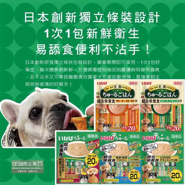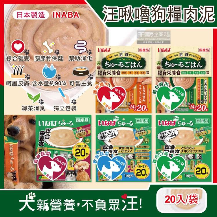 日本INABA-CIAO汪啾嚕狗糧寵物營養主食肉泥20入/袋(犬用狗飼料/雞肉雞柳流質點心/關節骨保健/幫助消化/呵護皮膚/綠茶消臭/毛孩補水零食)