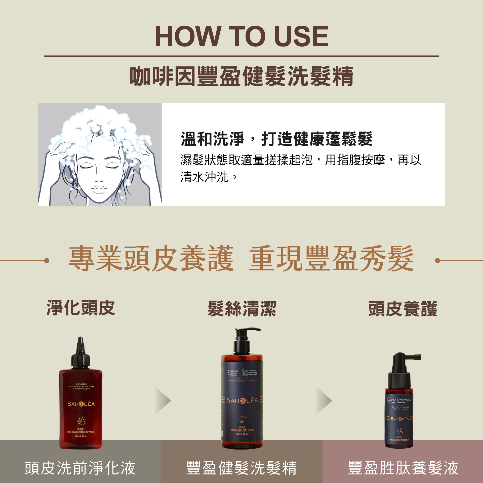 【森歐黎漾】質進化咖啡因豐盈健髮洗髮精480ml SAHOLEA (健髮/養髮/洗髮水/洗頭水/頭皮護理/頭皮清潔/頭皮淨化/頭皮養護)