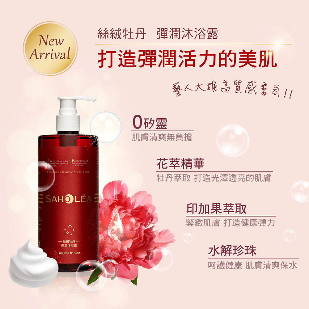 【森歐黎漾】絲絨牡丹彈潤沐浴露480ml SAHOLEA (小明星大跟班/醫師好辣/一袋女王/節目推薦)