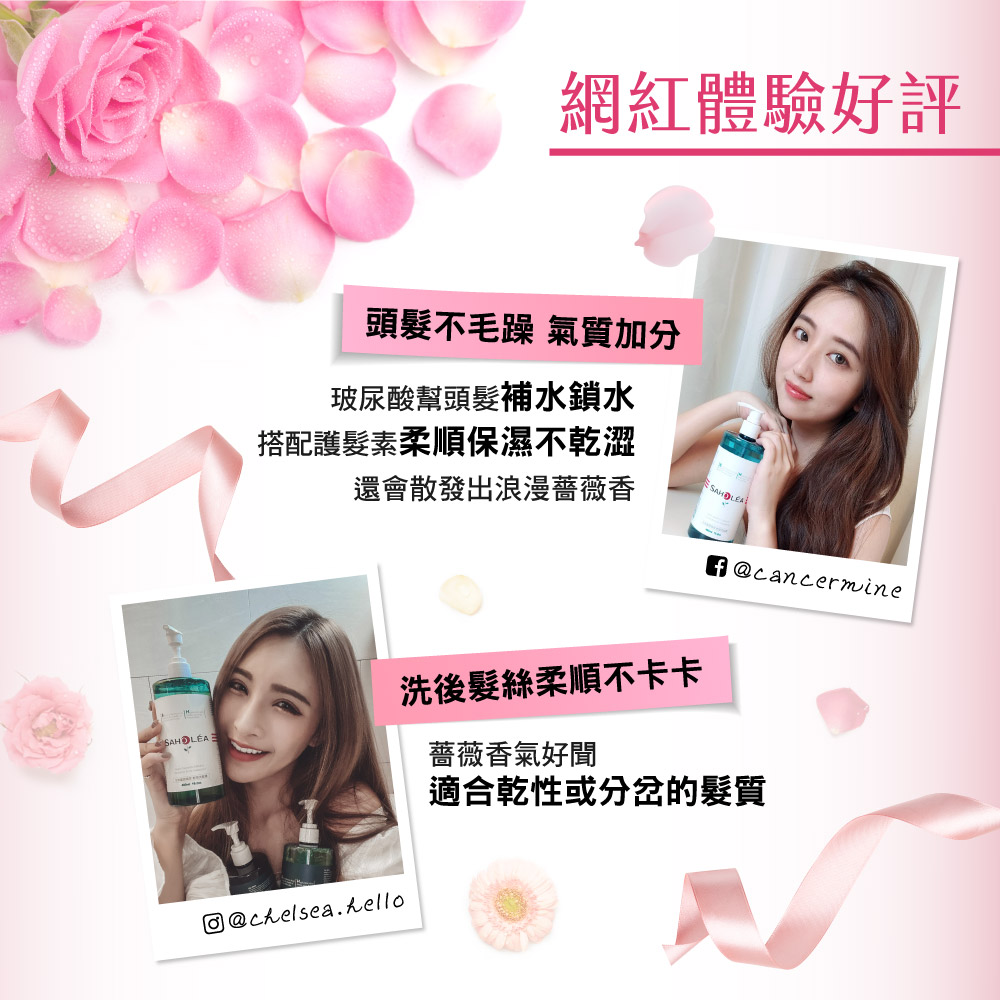 【森歐黎漾】水漾薔薇保濕潤澤2洗1護組〔洗髮480mlx2+護髮480mlx1〕 SAHOLEA (小明星大跟班/醫師好辣/一袋女王/節目推薦)
