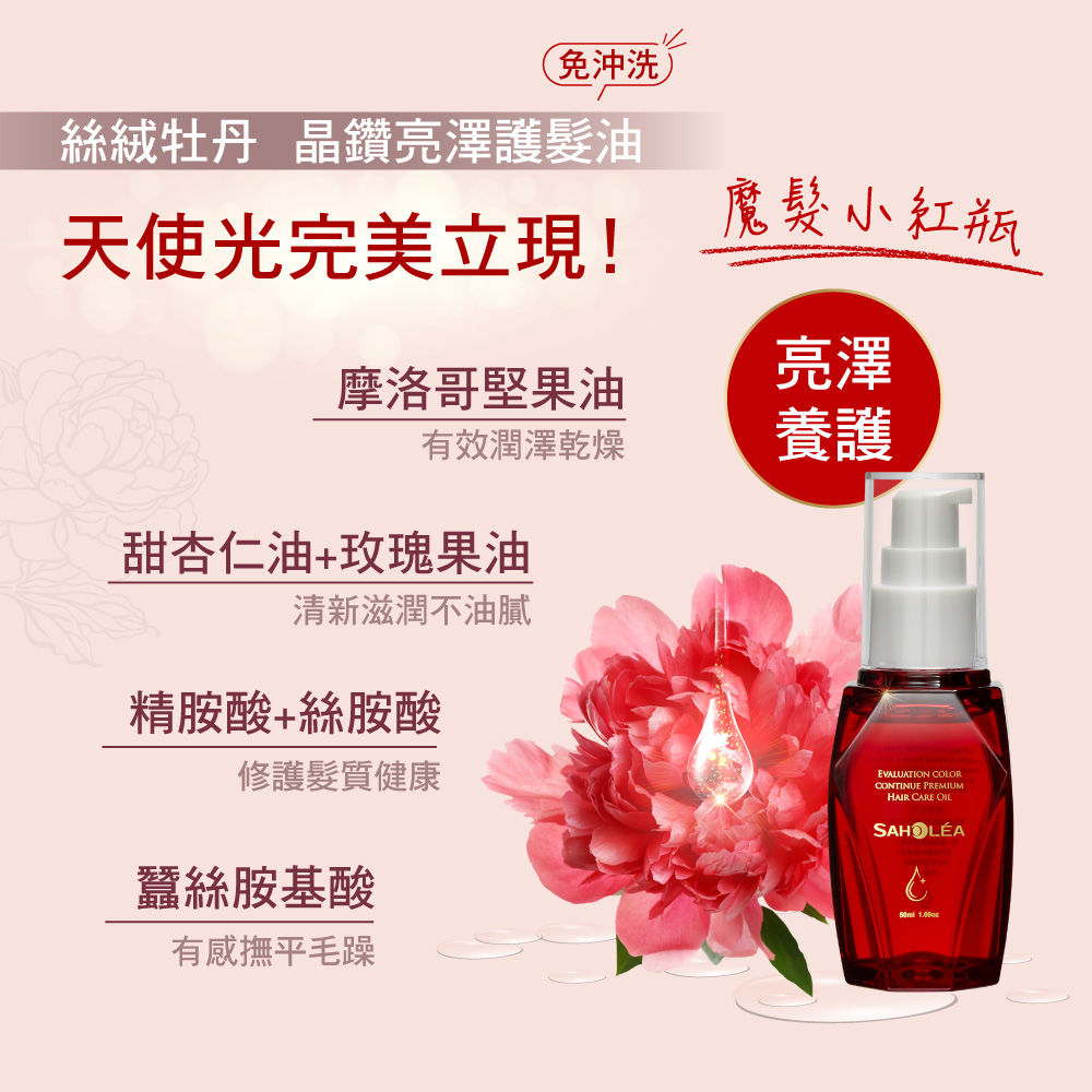 【森歐黎漾】絲絨牡丹護色洗護油3件組[洗髮480ml+髮膜190g+髮油50ml]魔髮小紅瓶/SAHOLEA (小明星大跟班/醫師好辣/一袋女王/節目推薦)