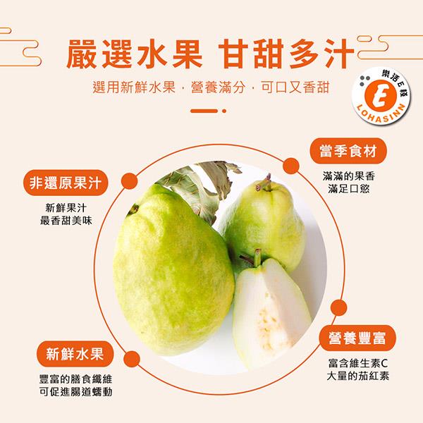 內容物成份:水、芭樂原汁、蒟蒻果凍粉(砂糖、蒟蒻粉、鹿角菜膠、氯化鉀)