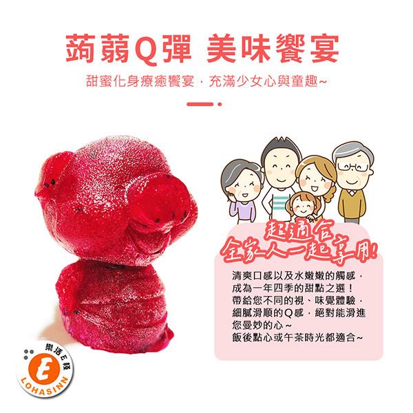 成分:水、紅火龍果、蒟蒻果凍粉(砂糖、蒟蒻粉、鹿角菜膠、氯化鉀)、檸檬原汁