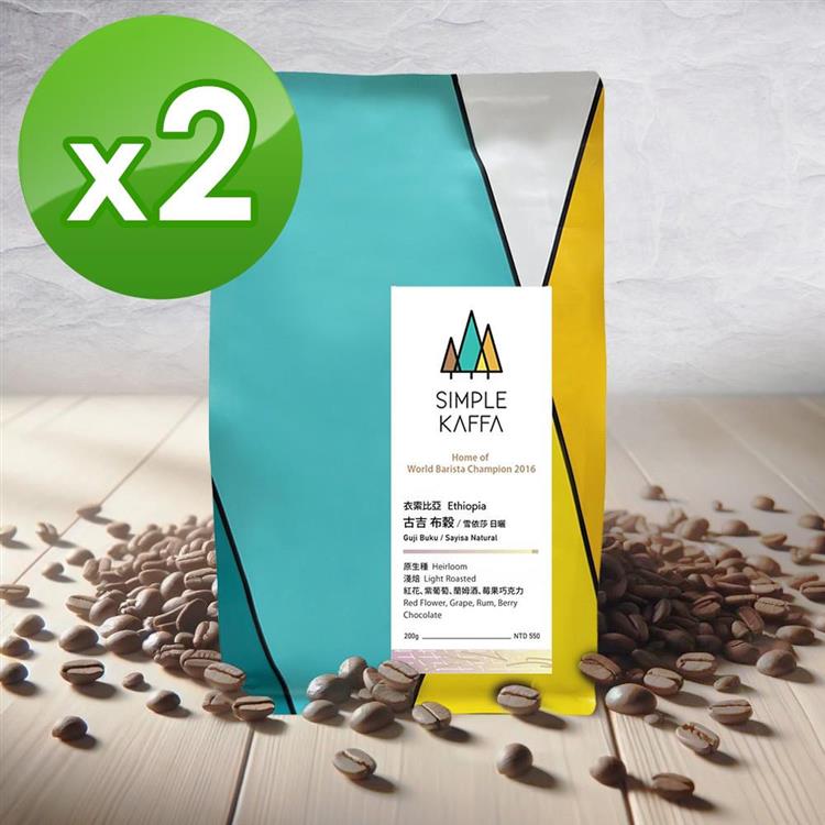 【Simple Kaffa 興波咖啡】古吉日曬咖啡豆-淺焙-200公克*2(世界冠軍吳則霖)