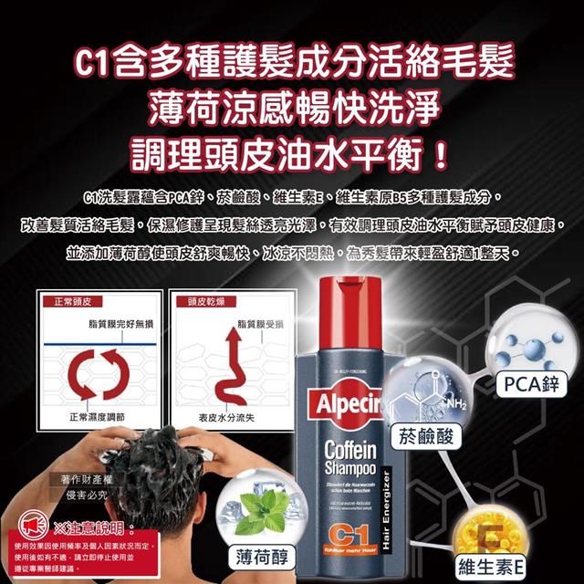 ●洗淨頭皮養護控油,咖啡因深入髮根補充能量,約24小時鞏固秀髮!