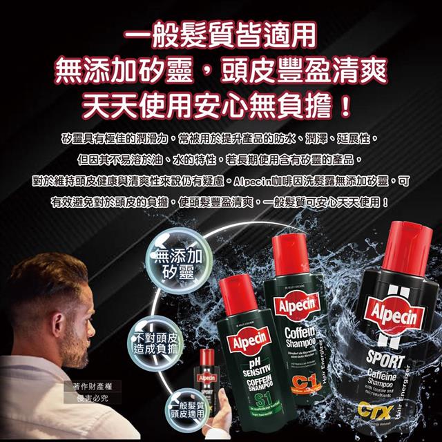 德國Alpecin-強健髮根控油無矽靈咖啡因洗髮凝露250ml/瓶(運動護髮洗髮精,男士調理頭皮洗髮液, 0%矽靈保濕滋潤洗頭髮水,油性髮質洗髮乳)