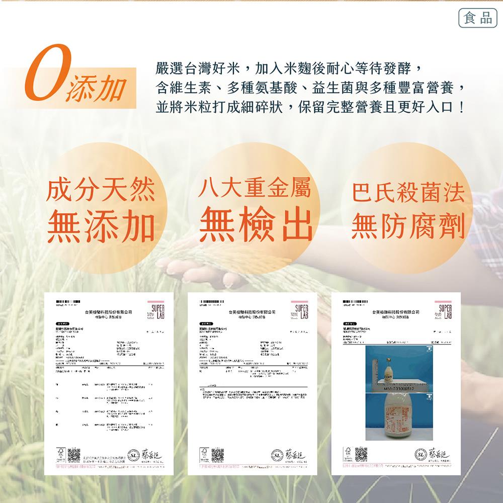 ☆三星好米及米麴精釀、科技序化細微易吸收 ☆日本傳統養生飲品、老少咸宜全年適飲 ☆調整體質增強體力、美肌養顏腸道好健康 ☆攜帶方便開瓶直飲、