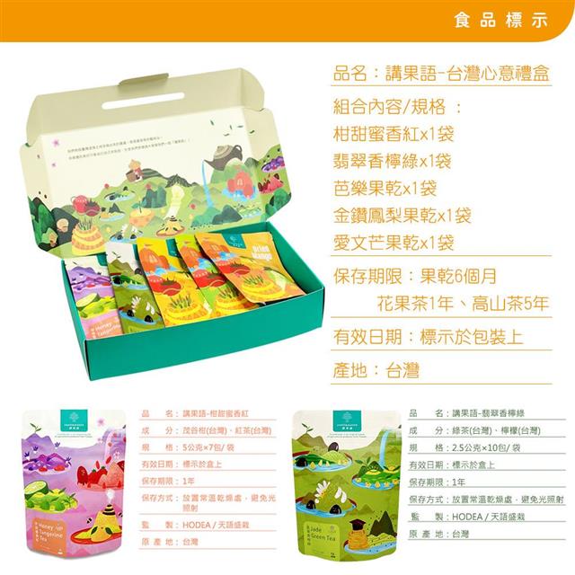 【講果語】台灣心意禮盒_果乾茶品5入組(柑甜蜜香紅、翡翠香檸綠、芭樂果乾、鳳梨果乾、愛文芒果乾)