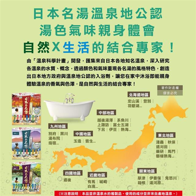 ●品名:名湯溫泉潤澤香氣泡澡入浴劑