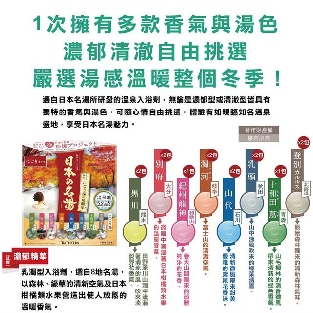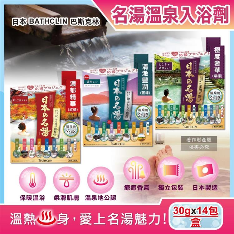 日本BATHCLIN巴斯克林-名湯溫泉潤澤香氣泡澡入浴劑30gx14包/盒(多款獨立包裝/療癒泡澡粉/舒壓放鬆溫泉粉/旅用便攜泡湯粉包)