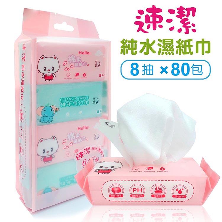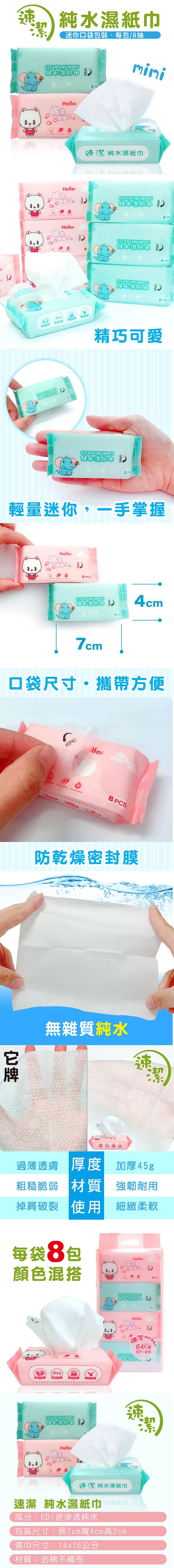 速潔 迷你濕紙巾 純水濕紙巾 8抽x80包 加厚mini濕紙巾隨身包 口袋濕巾 鳳梨酥濕巾