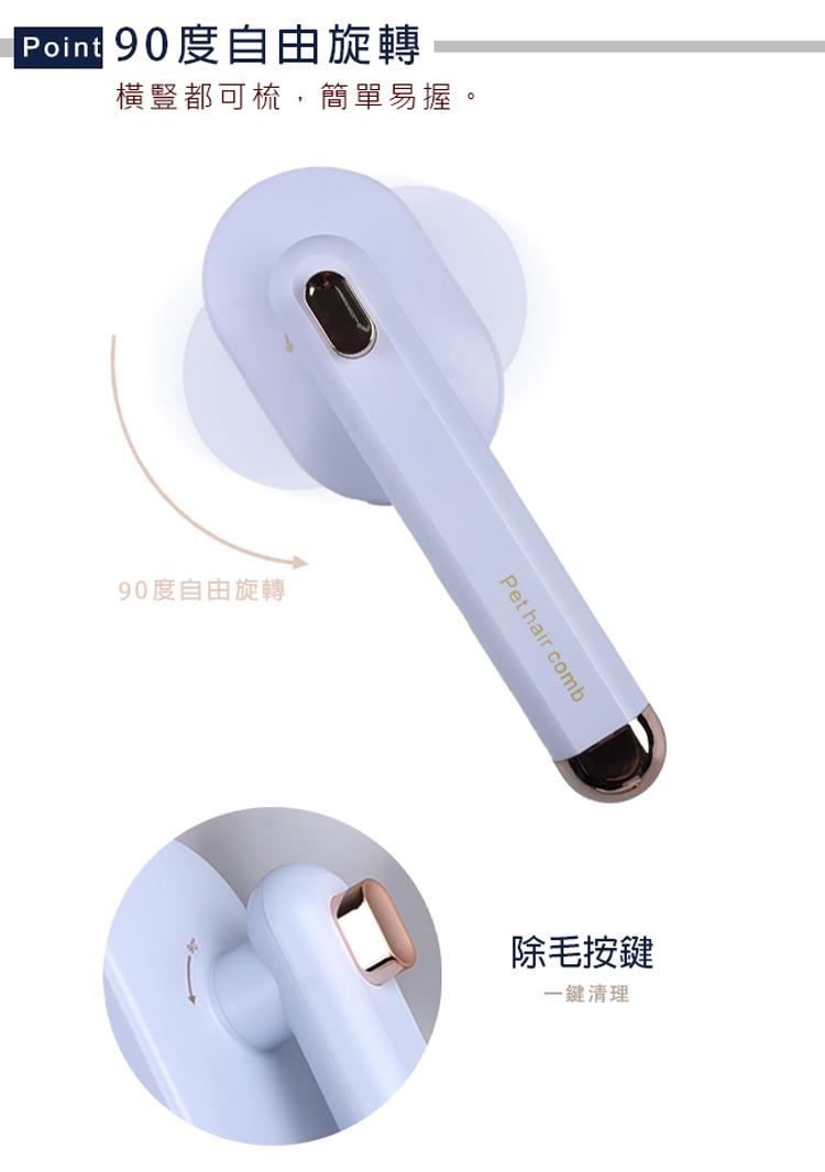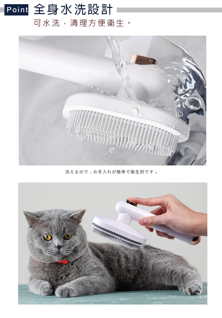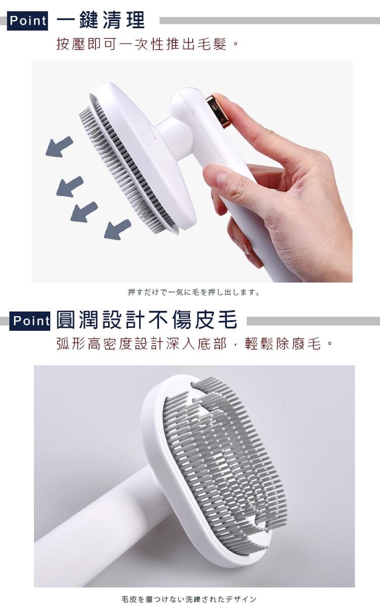 按壓即可一次性推出毛髮,弧形高密度設計深入底部,可水洗清理方便衛生