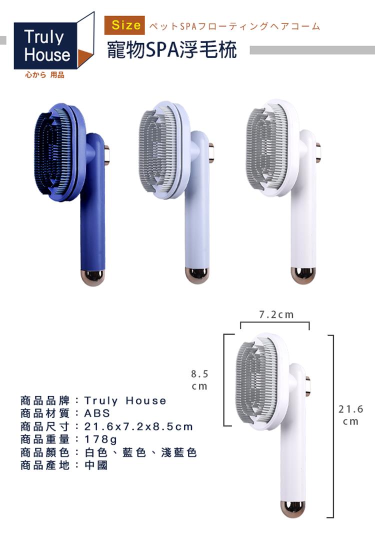 【Truly House】寵物SPA浮毛梳 一鍵除毛/寵物梳/梳毛器/狗狗梳/貓梳(三色任選)(超值兩入組)