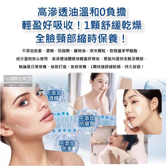 ●溫和0負擔,輕盈好吸收!全臉頸部縮時保養!日夜鎖水保養1顆搞定!