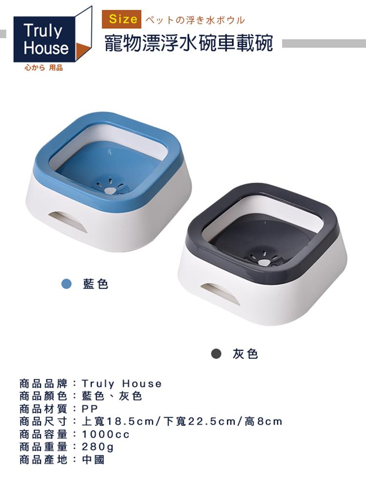 【Truly House】可車載寵物不濕嘴漂浮水碗 1L車載碗 懸浮飲水器 防打翻 貓咪飲水機 防濺水 貓狗飲水碗(兩色任選)(超值兩入組)