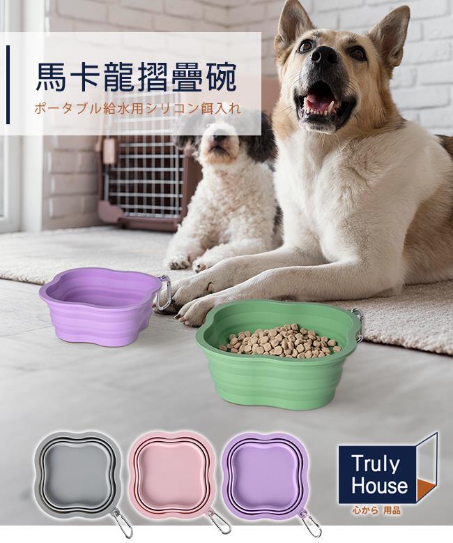 【Truly House】四葉草馬卡龍寵物折疊碗 1000cc 矽膠摺疊碗 多功能寵物折疊碗 矽膠碗 摺疊碗 餵食碗 附掛扣 外出矽膠碗(兩色任選)(超值兩入組)