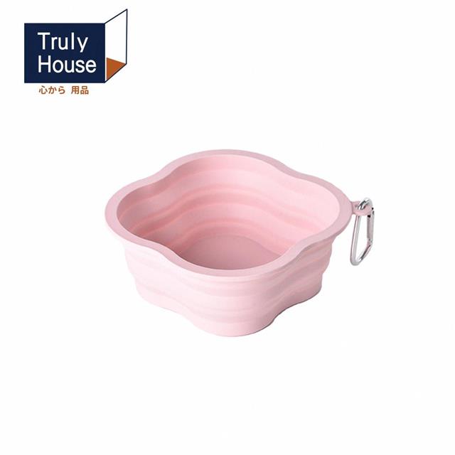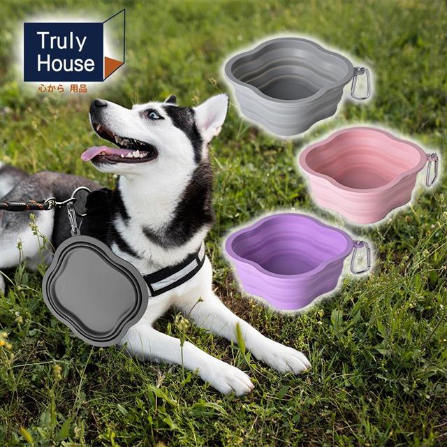 【Truly House】四葉草馬卡龍寵物折疊碗 500cc 矽膠摺疊碗 多功能寵物折疊碗 矽膠碗 摺疊碗 餵食碗 附掛扣 外出矽膠碗(三色任選)