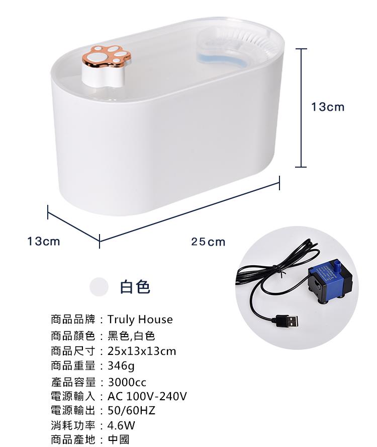 【Truly House】寵物智慧飲水機 燈光pro款 三重過濾/貓狗飲水機 自動循環過濾活水機/餵水器/飲水器/喝水器(兩色任選)