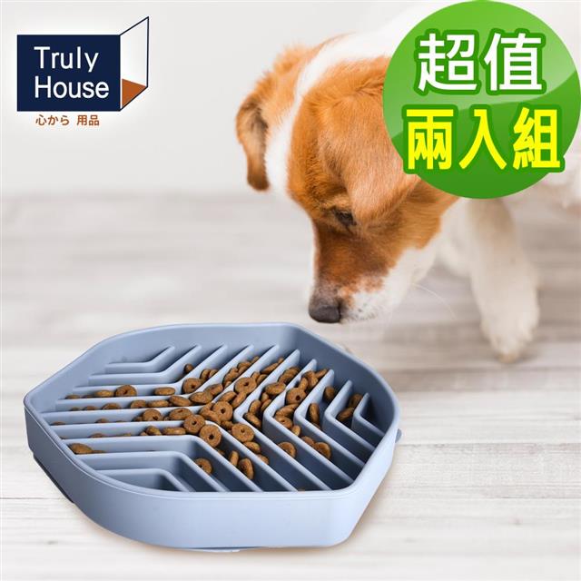 【Truly House】寵物頂級矽膠慢食碗 加大款 防打翻設計/防噎食碗/寵物碗(兩色任選)(超值兩入組)