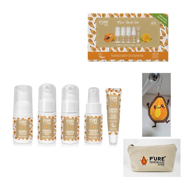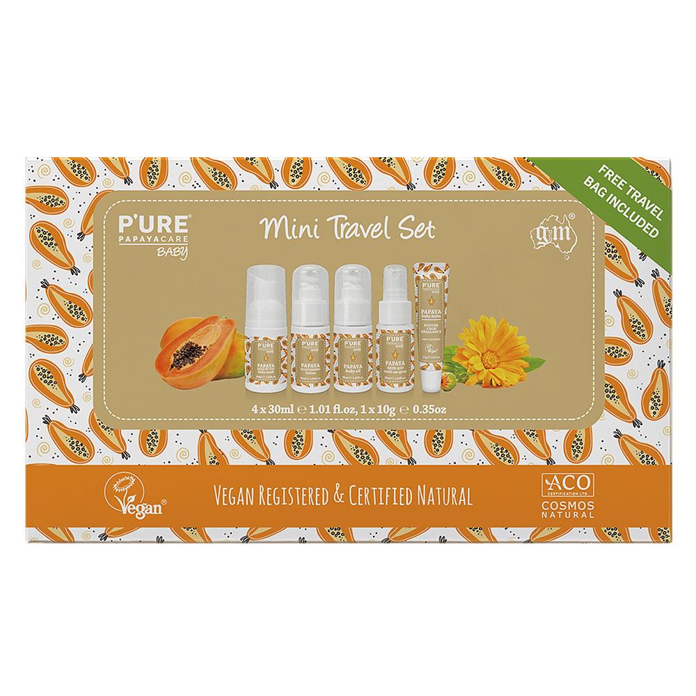 【澳洲 Pure Papayacare】木瓜嬰兒迷你旅行套組含沐浴液、乳液、嬰兒油、噴霧、軟膏 (1 入組,5件/組)