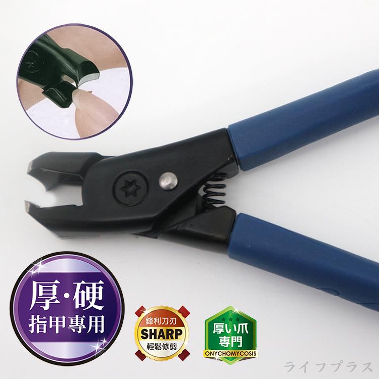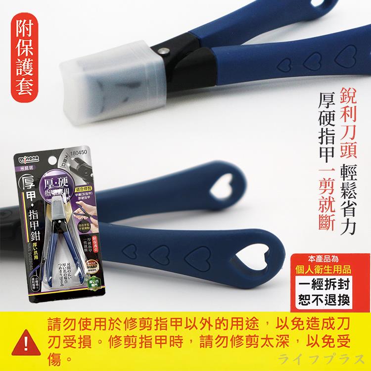銳利刀頭,適合修剪甲癬(灰指甲)厚硬指甲專用,大開口設計,一剪就斷輕鬆省力,附保護套體積小便利攜帶。