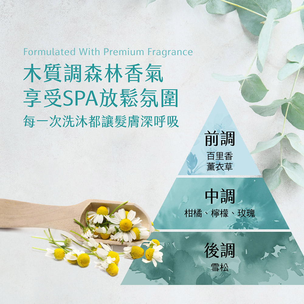 選用鮮萃洋甘菊、高濃度玻尿酸、保養品級胺基酸,維持油水平衡,洗後清爽不黏膩,蓬鬆豐盈