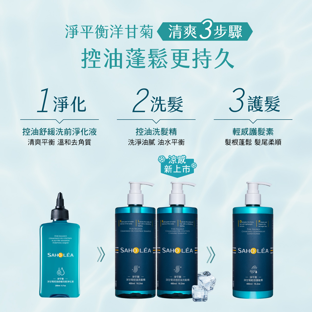 【森歐黎漾】淨平衡洋甘菊涼感控油洗髮精480ml SAHOLEA (小明星大跟班/醫師好辣/一袋女王/節目推薦)