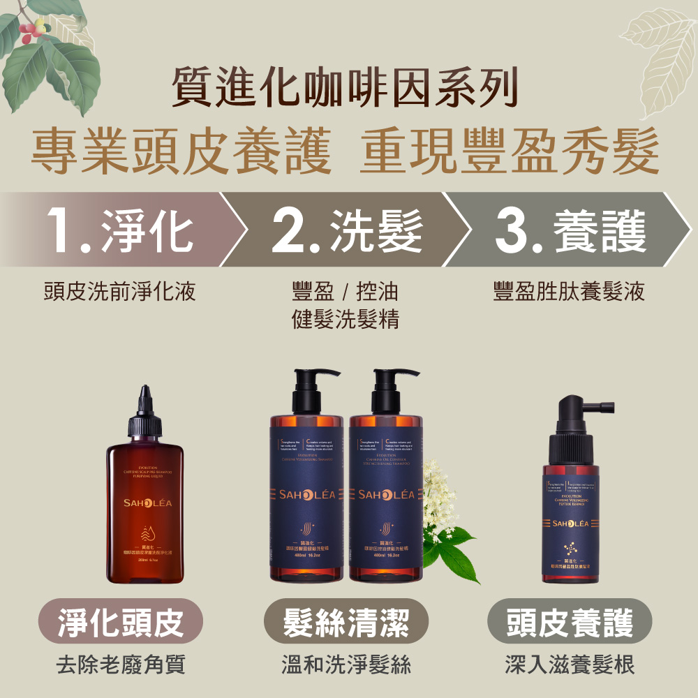 【森歐黎漾】質進化咖啡因豐盈健髮洗髮精480ml SAHOLEA (健髮/養髮/洗髮水/洗頭水/頭皮護理/頭皮清潔/頭皮淨化/頭皮養護)