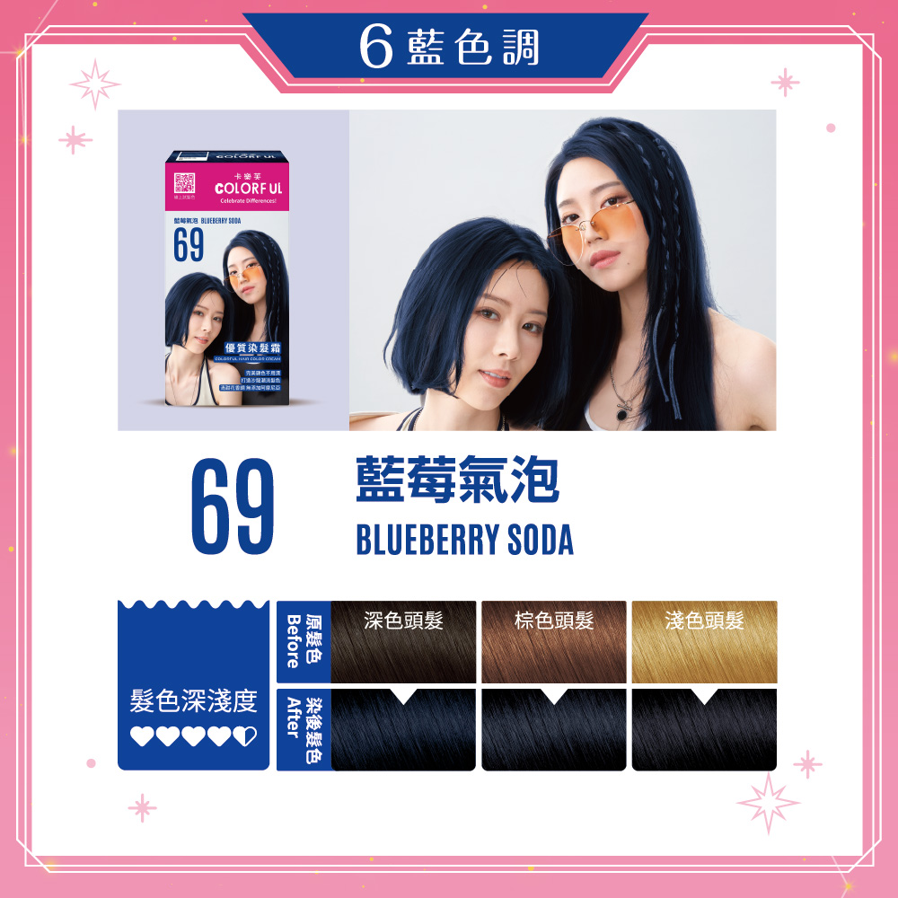 【卡樂芙】69藍莓氣泡.優質染髮霜(A劑&B劑各50g)/盒 韓系手搖飲髮色 單件賣場 COLORFUL