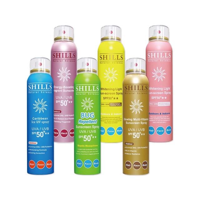 SHILLS舒兒絲-很耐曬超清爽SPF50+★★長效約8小時亮白保濕冰鎮防曬噴霧180ml/罐(抗紫外線UVA UVB/定妝控油潤色隔離霜)