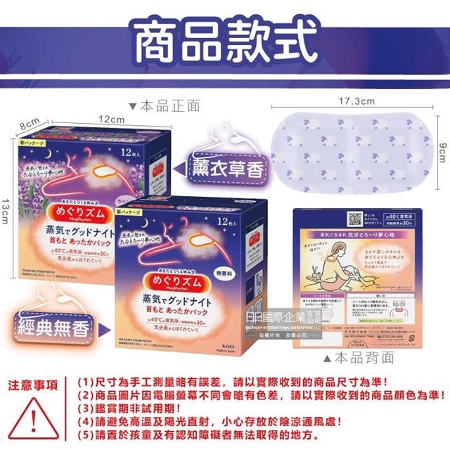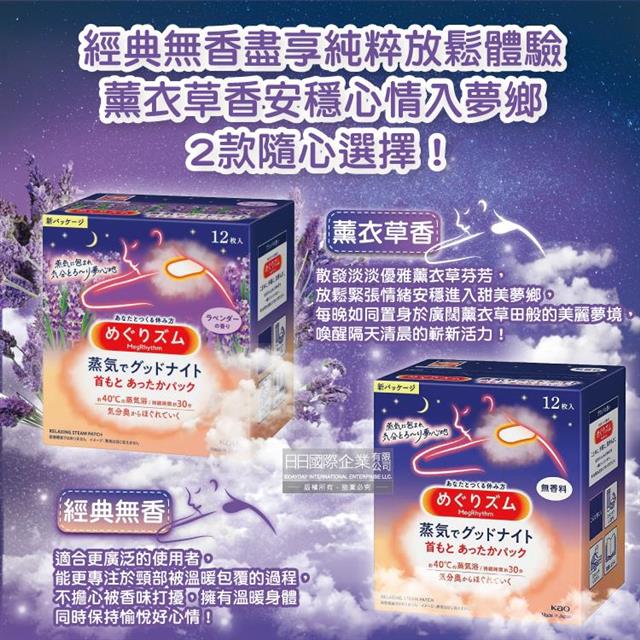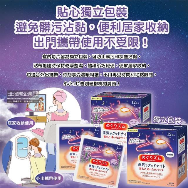 日本KAO花王-約40°C蒸氣睡前溫感肩頸熱敷貼片12片/盒(長效約30分鐘/晚安蒸氣貼/就寢前溫熱貼片/伸展運動加溫貼布/溫暖頸部放鬆心情)