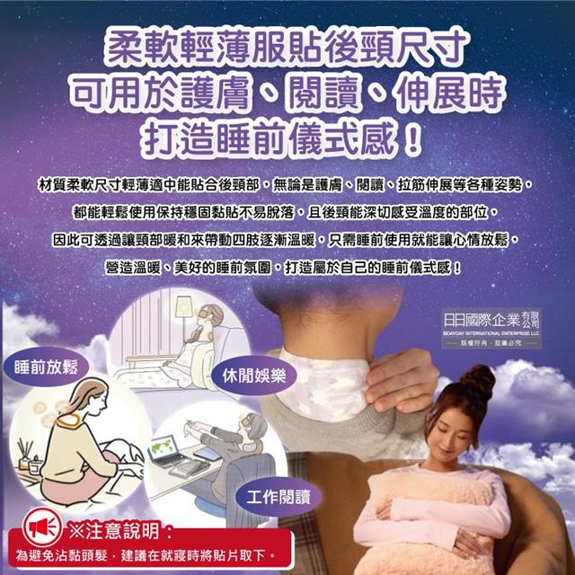●品名:約40°C蒸氣睡前溫感肩頸熱敷貼片