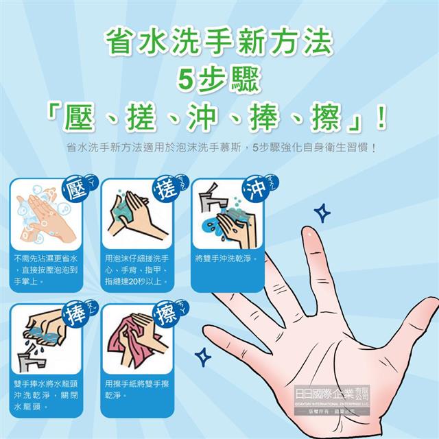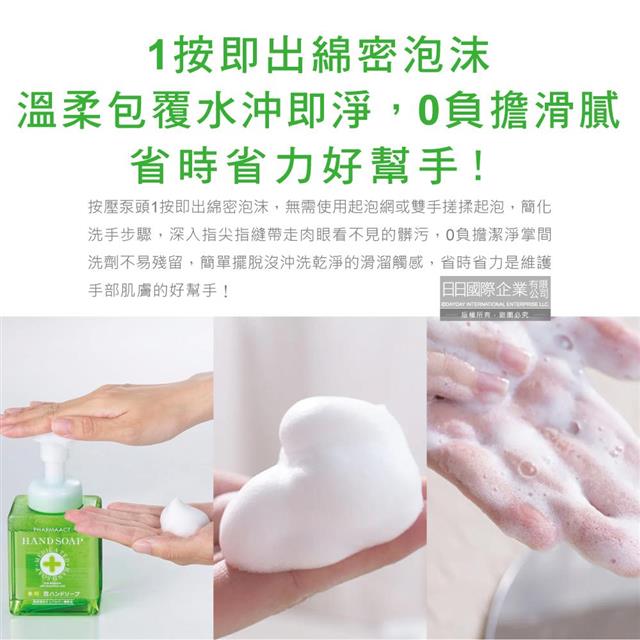 ●使用方法:按壓適量泡沫於手掌心上充分搓揉後,再用清水洗淨即可。