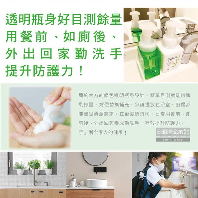 ●日本製,透明瓶身餘量可見,勤洗手提升防護,打造全家舒適洗手氛圍!