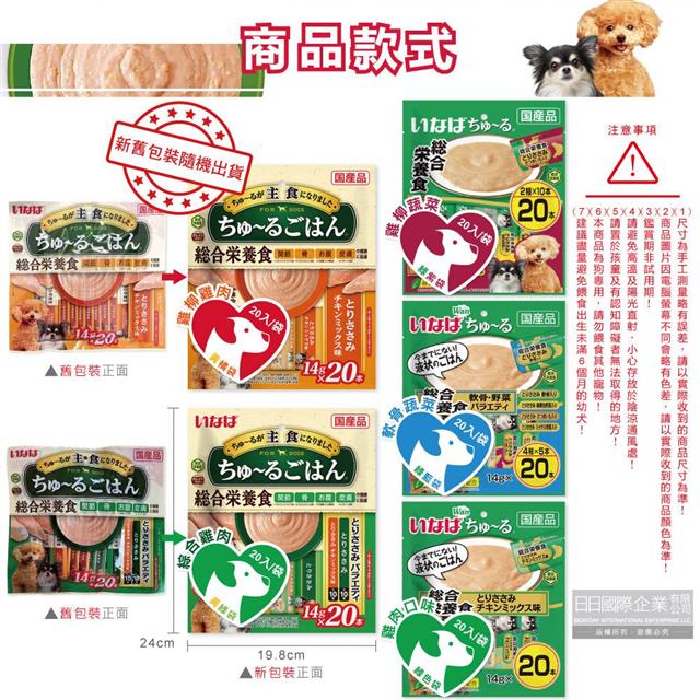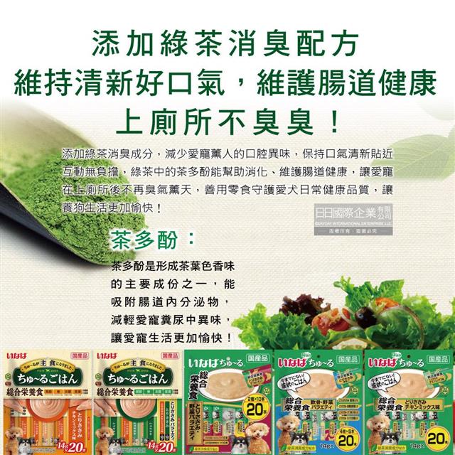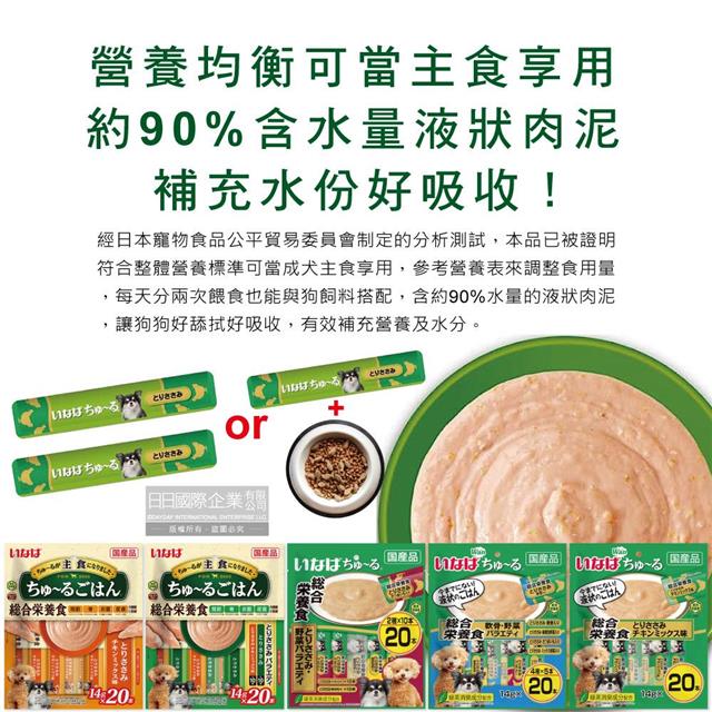 日本INABA-CIAO汪啾嚕狗糧寵物營養主食肉泥20入/袋(犬用狗飼料/雞肉雞柳流質點心/關節骨保健/幫助消化/呵護皮膚/綠茶消臭/毛孩補水零食)