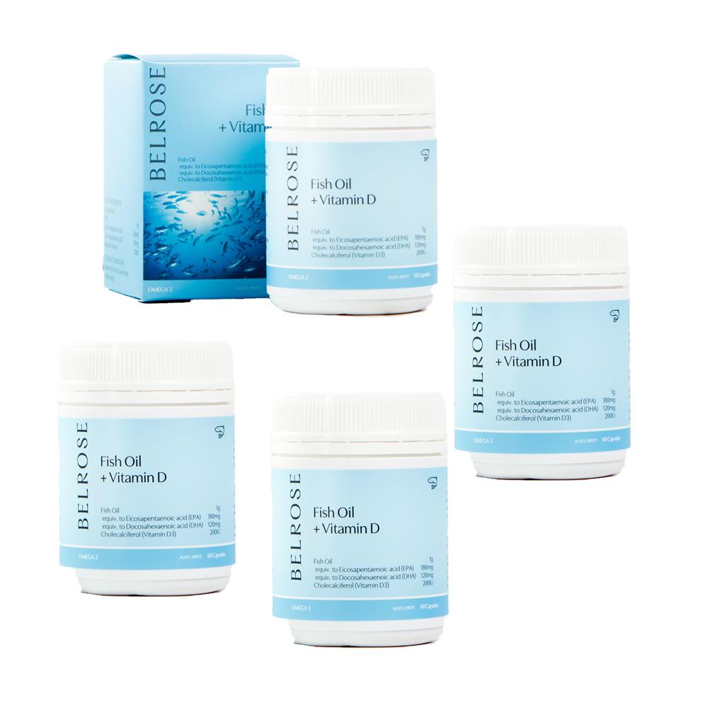 【澳洲澳倍美Belrose】魚油+維他命D膠囊 4入組 60顆/瓶
