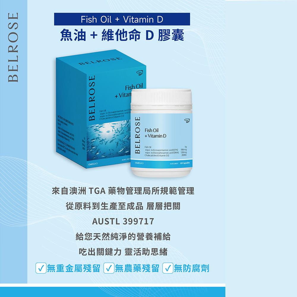 【澳洲澳倍美Belrose】魚油+維他命D膠囊 6入組 60顆/瓶