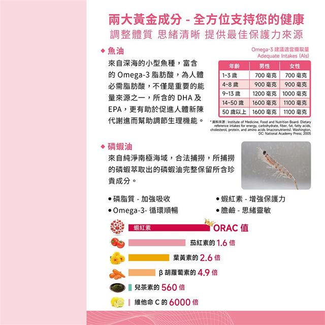 頂級的南極磷蝦油效果好 來自深海的小型魚種 超好的搭配,雙效合一