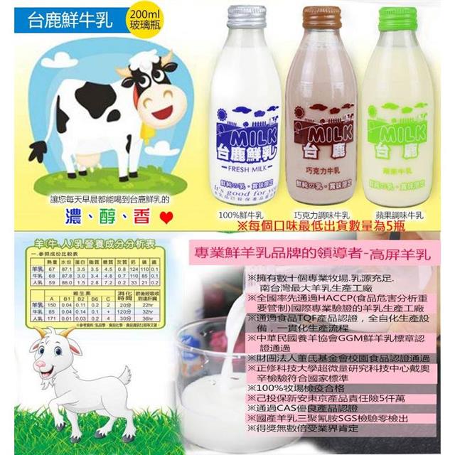 【高屏羊乳】台鹿系列-SGS玻瓶綜合牛奶200mlx30瓶(任選組合)