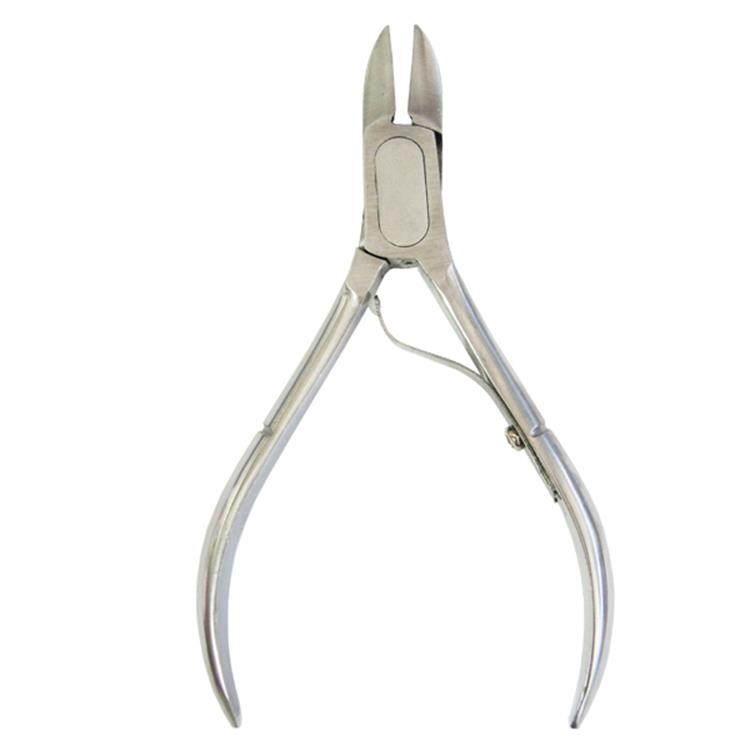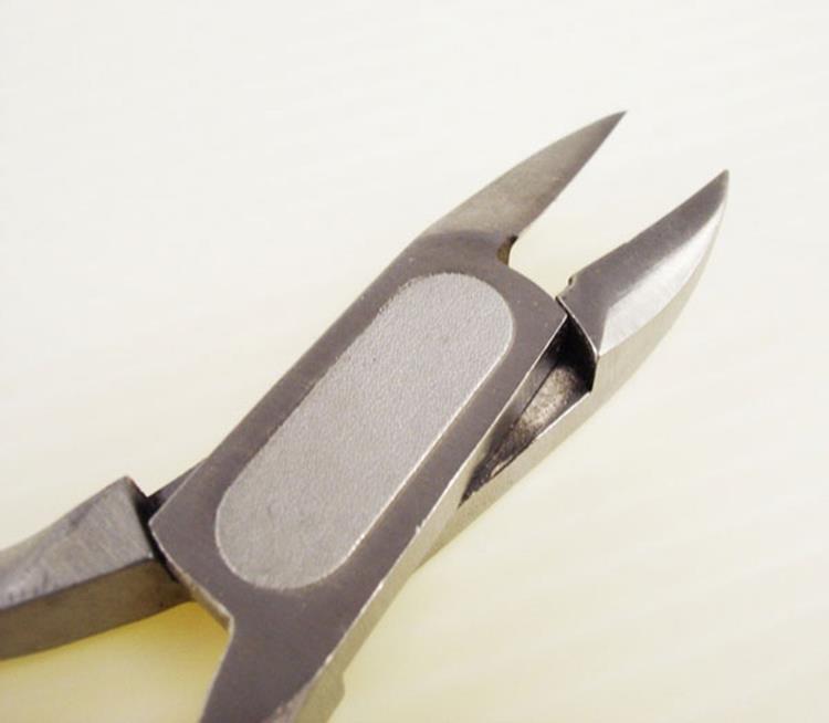 不銹鋼材質,專剪凍甲、灰指甲、較厚硬指甲、超硬足部死皮,使用彎弧刀口貼住指甲邊緣,利用前端1/3處進行修剪,握住把手虎口朝內。修剪時應沿著指甲的形狀修剪即可,預防倒刺。