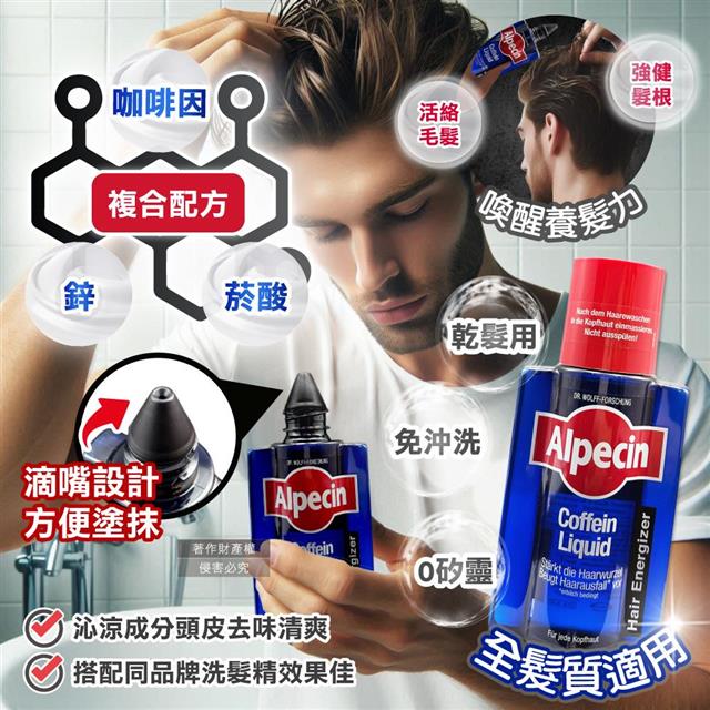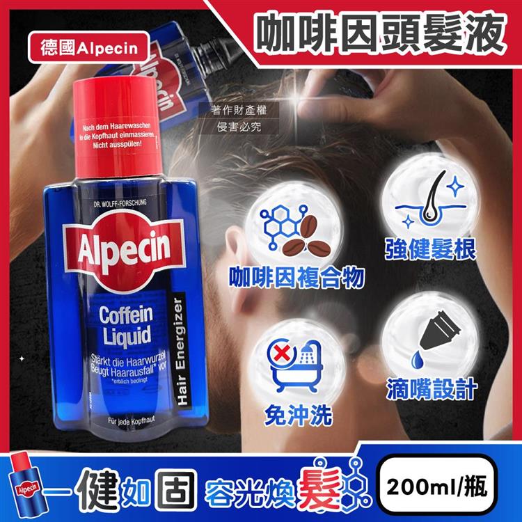 德國Alpecin-免沖洗養護調理頭皮強健髮根咖啡因頭髮液200ml/藍瓶(男士調理頭皮修護液/頭髮去味沁涼精華液/滋養活絡毛髮/0矽靈全髮質適用)