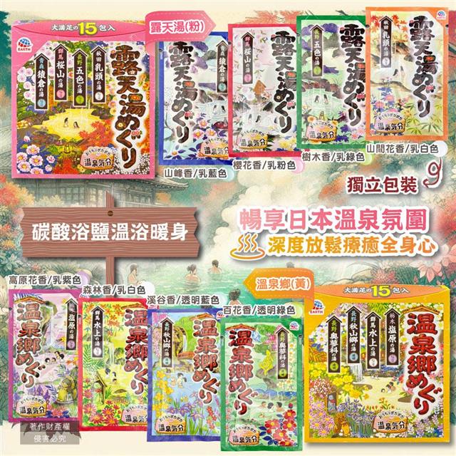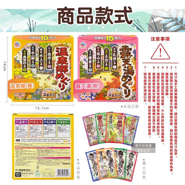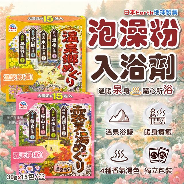 (美妝-清潔)日本Earth地球製藥-日本巡禮泡澡粉入浴劑30gx15包盒裝(2款)(介紹圖)